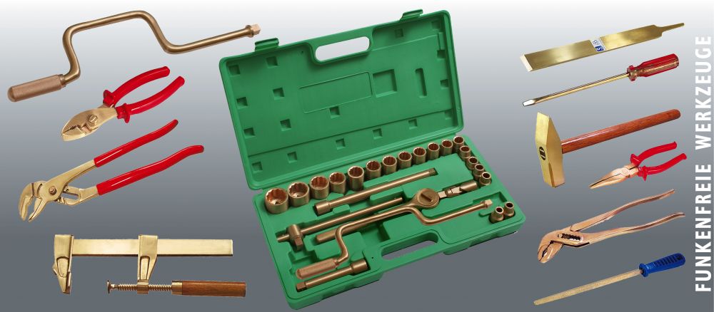 Funkenfreie Spezialwerkzeuge aus Berylliumkupfer (BeCU) werden überall dort benötigt, wo in explosionsgefährdeten Bereichen – wie z.B. an Gasleitungen und Kraftwerken sowie bei Militär und Bohrinseln – gearbeitet wird.